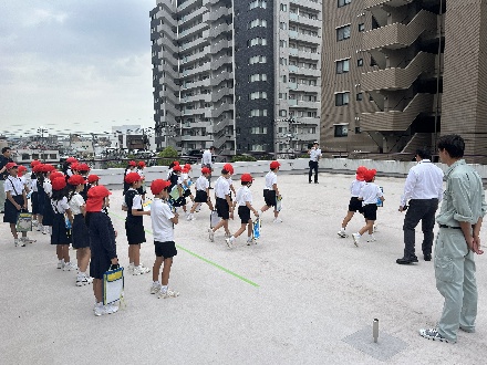 最後は、最新の測量方法のドローンで空から記念撮影を行い、子供たちから大歓声が起こりました。