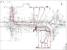変電所からお客さま電気室まで22kV専用CVケーブルを新設するため、地下埋設調査やマンホール内調査などを行った上で、管路の敷設ルートの検討とケーブル設計を実施。